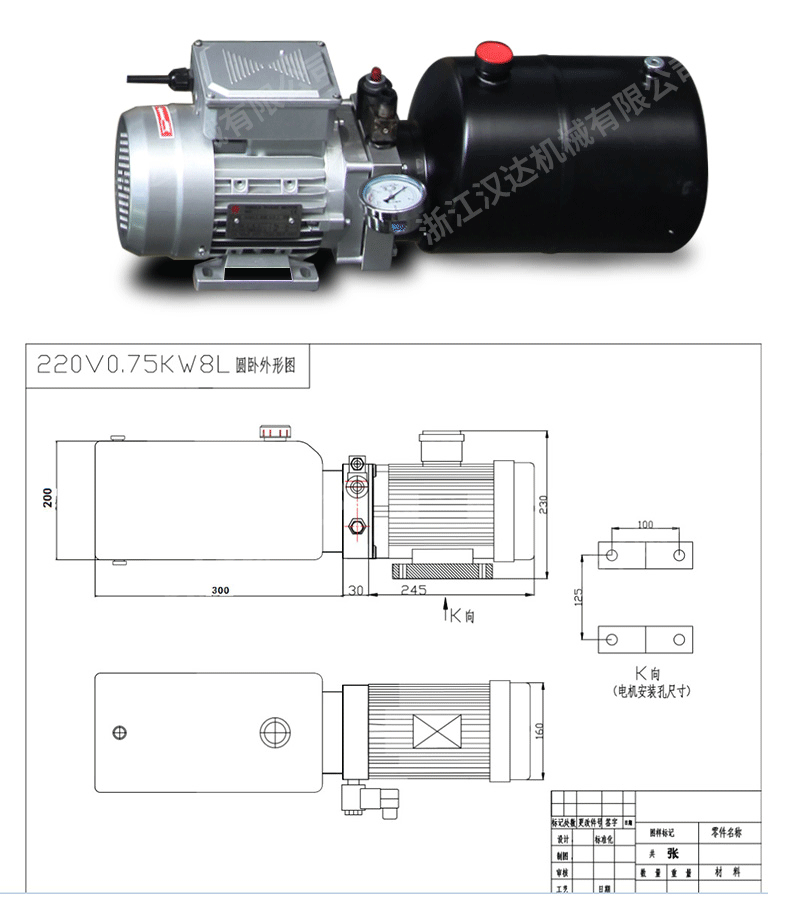 | 油泵 | 2.5ml/r | 電機(jī) | 0.75KW |