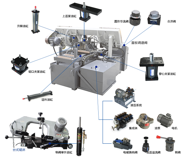 2014年山東最大的一家?guī)т彺补窘?jīng)朋友介紹,并查看了我們的公司網(wǎng)站等相關信息后,聯(lián)系到我們,希望我們能為他們設計定做帶鋸床液壓系統(tǒng)配件。因為他們公司帶鋸床主要以出口為主,質(zhì)量要求高,但當?shù)夭少彽囊簤号浼|(zhì)量并不是很穩(wěn)定,給他們售后也帶來了諸多不便。而他們主要的質(zhì)量問題就出在升降油缸。帶鋸床液壓缸中,最關鍵的就是升降液壓缸,如材料或工藝沒達到要求或者安裝不注意出現(xiàn)問題,則升降機構(gòu)會出現(xiàn)內(nèi)泄露機器自動會下降現(xiàn)象,抖動現(xiàn)象等。缸筒材料若是未經(jīng)過珩磨或滾壓處理的無縫鋼管,內(nèi)壁光潔度不夠,會產(chǎn)生活塞、缸筒、密封件配合不良等各種問題產(chǎn)生。而壁厚很薄的缸筒,當液壓油溫高了,缸筒容易熱脹變形,導致漏油,使用壽命較低;活塞桿作為油缸主要原材料之一,行業(yè)標準鍍鉻層厚度是2~3絲,部分油缸廠家為降低成本,會使用1絲不到的活塞桿,短期看不到問題,但是大大降低油缸使用壽命。