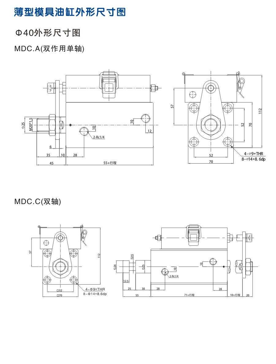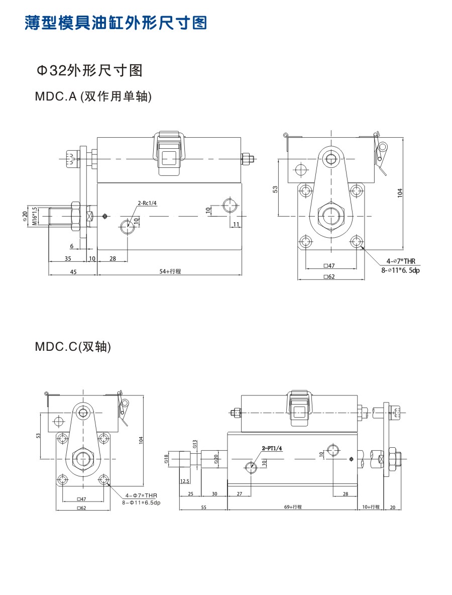 薄型模具油缸 外形安裝尺寸圖