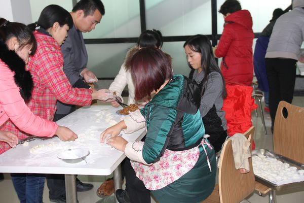 我公司領(lǐng)導(dǎo)組織各部門人員以及一線工人,弘揚(yáng)毛主席“自己動手,豐衣足食”的作風(fēng),東起全體員工自己動手包餃子。在公司領(lǐng)導(dǎo)的組織下,大家開始有秩序的進(jìn)行準(zhǔn)備工作,系上圍裙,有的和面、有的搟皮、有的做餃子餡。大家分開兩撥,這邊和面,那邊飽餃子,氣氛很活躍。同事們以迅雷不及掩耳之勢完成了準(zhǔn)備工作,準(zhǔn)備工作完成后,進(jìn)入包餃子階段,雖然很多同事不怎么會包餃子,但是在別人的幫助下很快進(jìn)入狀態(tài)??粗粋€個新鮮出爐的餃子,同事們的表情非常精彩,相互調(diào)侃的的話也漸漸多起來,包餃子工程進(jìn)入***階段,氣氛一時異常火熱,看著同事們一個個熱情洋溢的表情,一盤盤“奇形怪狀”的餃子真是羨煞旁人!