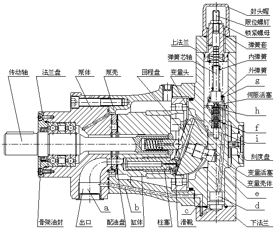 定量機構(gòu)中斜盤始終固定在定量端蓋上,不能改變柱塞的行程,所以其流量是固定的。